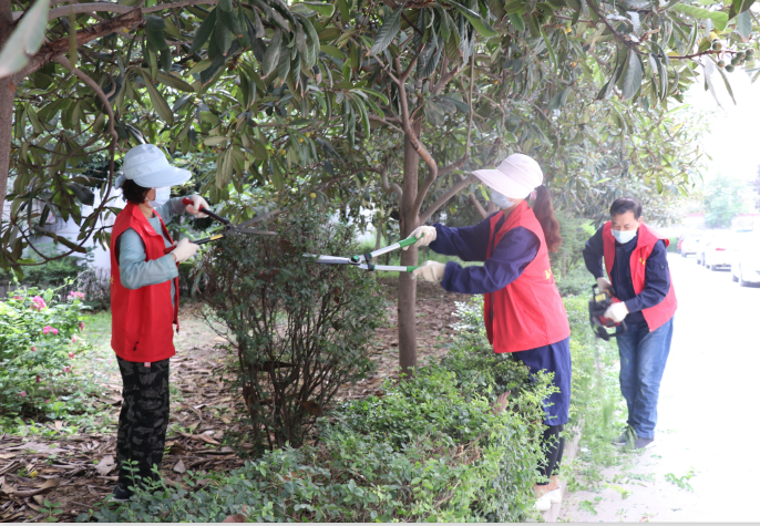 环境,修剪,党员干部,清理,公司,绿篱,杂草,进行,平方米,枯枝