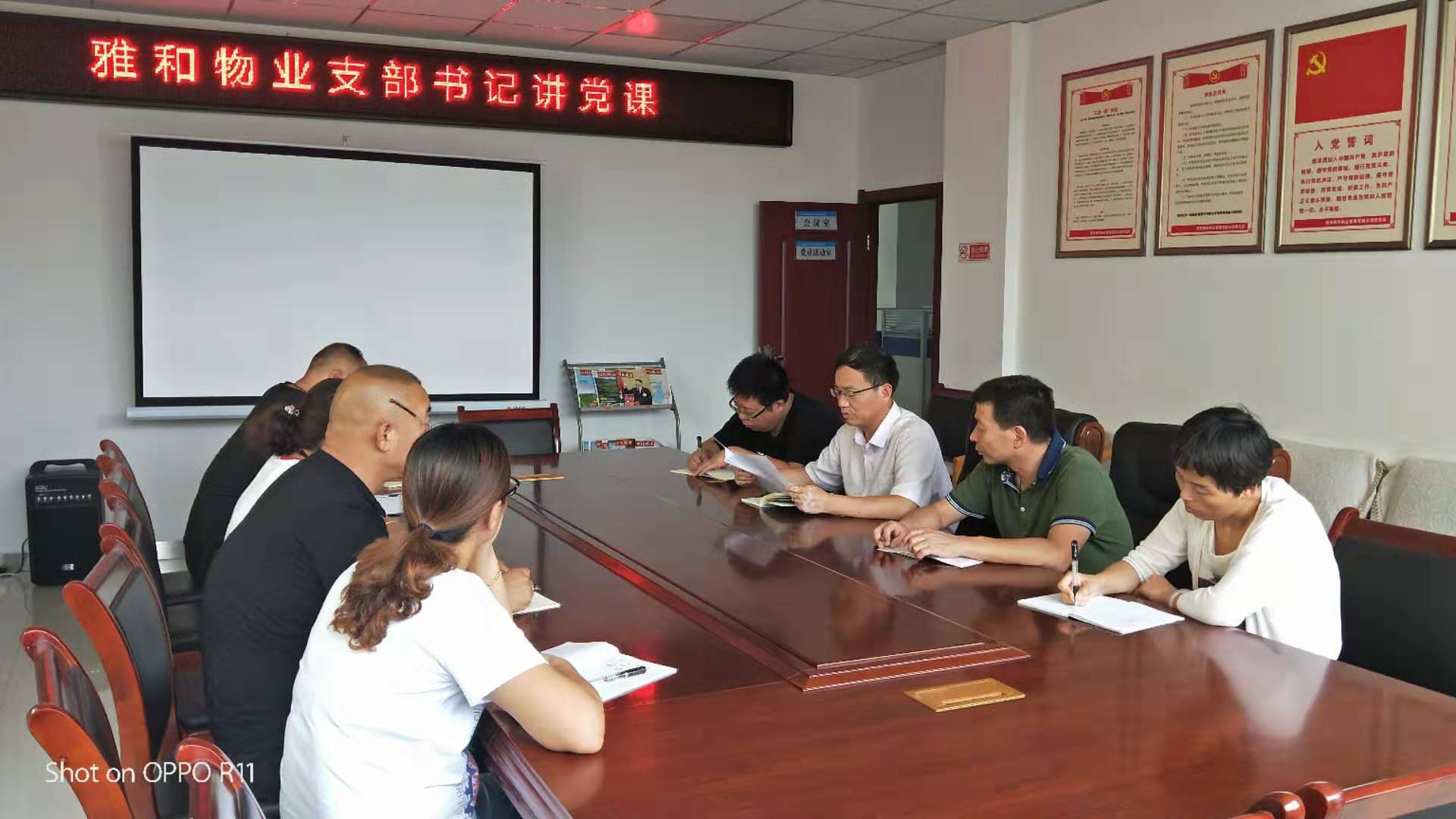 7月18日下午,雅和物业党支部开展了支部书记讲党课活动,党课内容为《讲奉献 ,有作为》,支部9名党员及1名发展对象参加了学习。