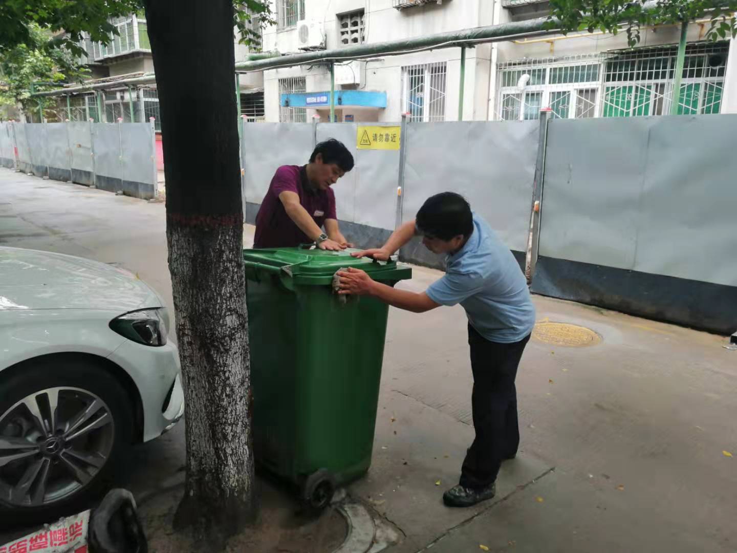 为了给居民营造一个干净舒适的生活环境,9月5日下午,咸阳二毛有限公司安排物业部全体人员针对两区的垃圾桶进行了清洗并消毒。