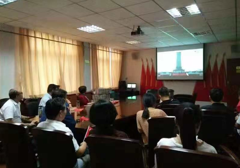 金秋国庆,举国欢腾。为庆祝祖国70华诞,感受中国人民70年奋斗历程, 10月1日上午10点,一棉实业公司组织领导班子及全体未外出党员在公司会议室集中观看《庆祝中华人民共和国成立70周年庆典活动》直播,表达了对伟大祖国、对中国共产党的深深祝福。