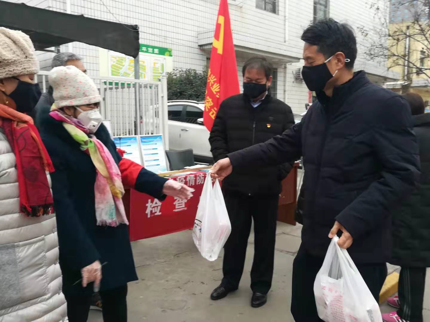 2月7日,华电兴业公司领导班子带着想方设法购来的汤圆,送到疫情防控一线值班人员手中。