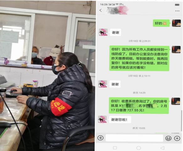 为了最大限度的防控疫情和减少人员聚集,财务部收费中心暂时停止服务,虽然收费工作暂停,但同志们仍然心系本职,通过平台通知,微信倡导,私信讲解等多种方式、宣传防疫动态,讲解收费政策和平台缴费操作要领,提升住户的认可度和主动缴费意识。尤其是公司常总传达了集团防疫复工专题会议精神,并对公司下一步的工作作出明确部署后,迅速抽调收费处两位同志及时返回南区、北区两个收费中心。两位同志接到命令后,顾不得休息,马上返回岗位,在做好场地整理和消杀保洁后立刻投入工作,并且在收费的过程中,不断提示缴费住户外出要佩戴口罩,做好个人防护保障住户自身的安全。而且还对每一位来缴费的住户主动推介微信缴费平台,并讲解其使用方法和操作技巧,对不熟悉使用的住户甚至手把手的教会他们。积极的工作状态和热情的服务态度,为他们赢得了不断的感谢之声,同时,为公司疫后复工复产,走上正常秩序亮名了财务人的名片!