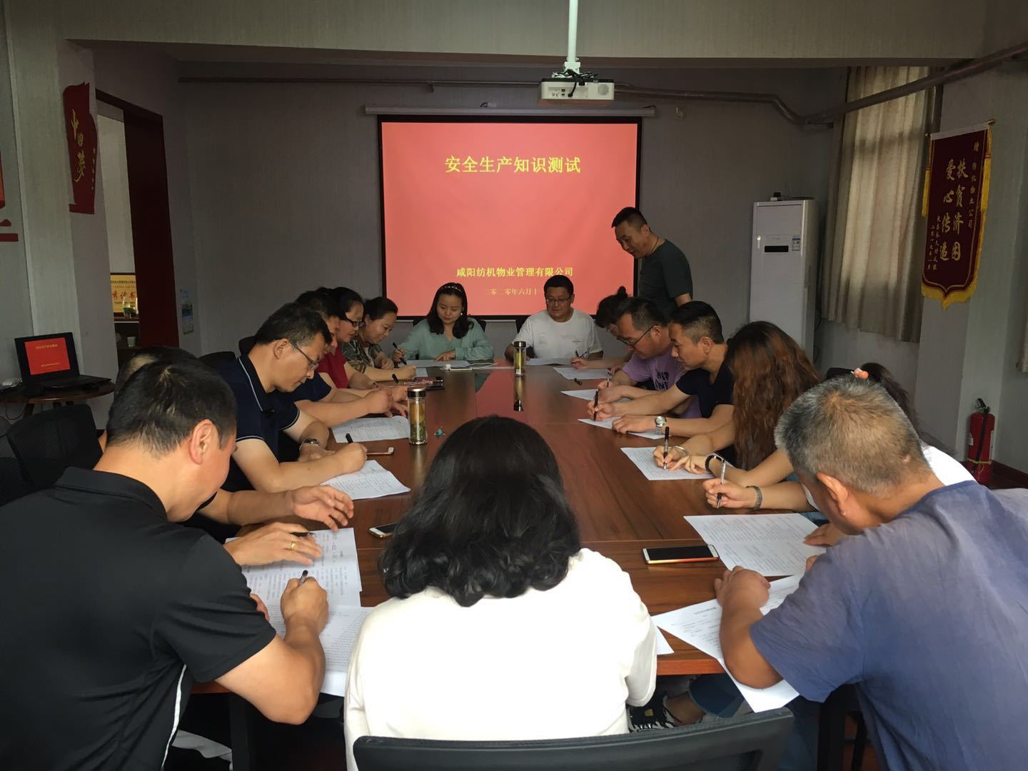 今年6月是第19个全国“安全生产月”,为认真贯彻落实习近平总书记“从根本上消除安全隐患,有效遏制重特大事故发生”的重要指示精神,咸阳纺机物业管理有限公司于6月11日开展了以“消除事故隐患、筑牢安全防线”为主题的安全知识测试。安全知识测试是“安全生产月”系列活动之一,前期已举行了安全宣传、消防演练等。此次测试,公司领导高度重视,带头参加,全员参与。试卷内容涉及安全生产规章制度、消防灭火知识、