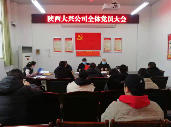 为开展好2021年度公司党委基层党组织生活会和民主评议党员工作,2月16日上午,陕西大兴公司党委组织召开全体党员大会,全面部署基层党组织生活会和民主评议党员工作。会议由党委书记、董事长王文强同志主持,公司全体党员参加了会议,各支部发展对象及入党积极分子列席了会议。