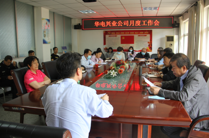5月11日,华电兴业召开月度工作会,传达物产集团工作会议精神,安排部署公司近期重点工作,公司主管以上干部参会,党委书记、董事长、总经理曹爱国主持会议。