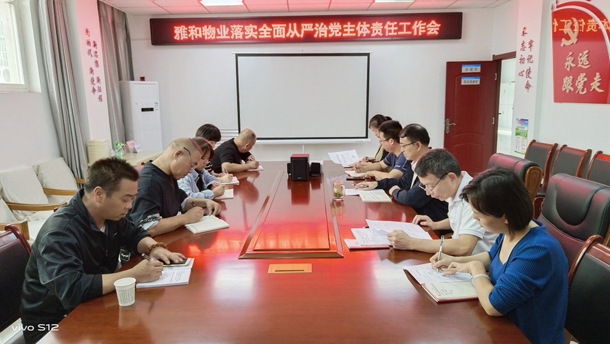为全面落实党委(党组)全面从严治党主体责任,推动公司全面从严治党向纵深发展,9月22日下午,雅和物业党支部组织全体党员干部召开落实全面从严治党主体责任工作会,会议由公司党支部书记、总经理宋晓君主持。
