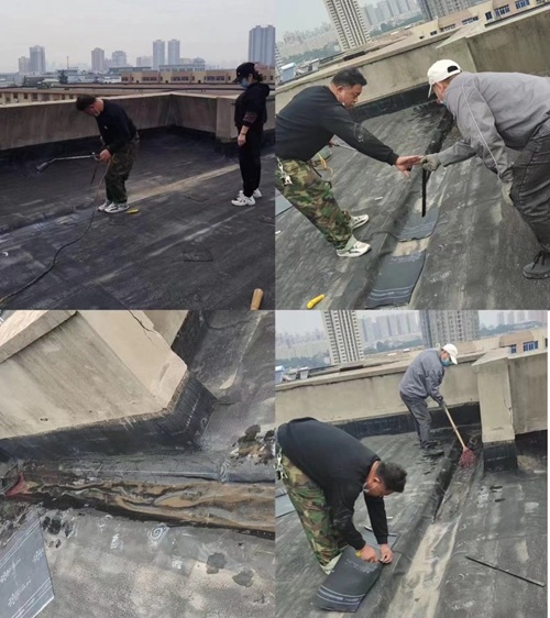 工作人员分批划区,爬上屋顶进行细致检查,大部分屋顶情况良好,极个别楼宇因长期日晒雨淋,防水层出现细微开裂情况,工作人员对此类问题进行详细记录,前往采购补漏膏、油性聚氨酯防水涂料等所需材料,对微小裂缝进行填补勾缝处理。